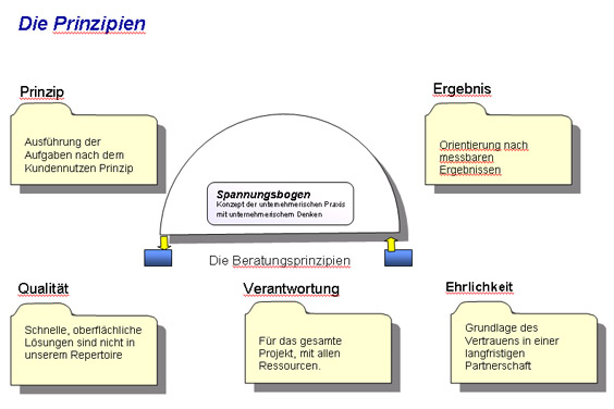 Entstanden aus der unternehmerischen Praxis bei der Umsetzung von Dienstleistungen, setzen wir auf Beratungsprinzipien mit der erforderlichen Kompetenz und Erfahrung. Unternehmerisches Denken ist selbstverständlich.